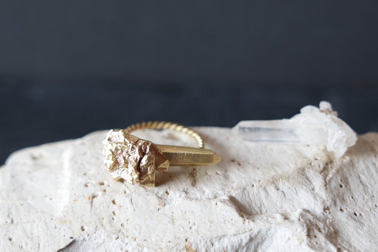 leg.では彫金職人がひとつずつ手作業で作製しております。鋳造したパーツと金属を切り出したり、ねじったりして加工したパーツの両方を組み合わせて、バーナーで熱し、ロウ付けで組み上げて作製しております。全てのパーツを鋳造で作ってしまうと、安価で手間は少ないのですが、例えば細い線などは曲がりや歪みが出てしまったり強度も落ちてしまいます。パーツによって最適な加工法を選び、手間はかかりますがひとつずつパーツを作り、ロウ付けすることで、強度と美しさを生み出しています。またメッキをかけると傷やロウ付け跡はごまかせてしまいますが、メッキ加工はしていない為、ヤスリがけには一番時間を費やし細やかに磨いております。