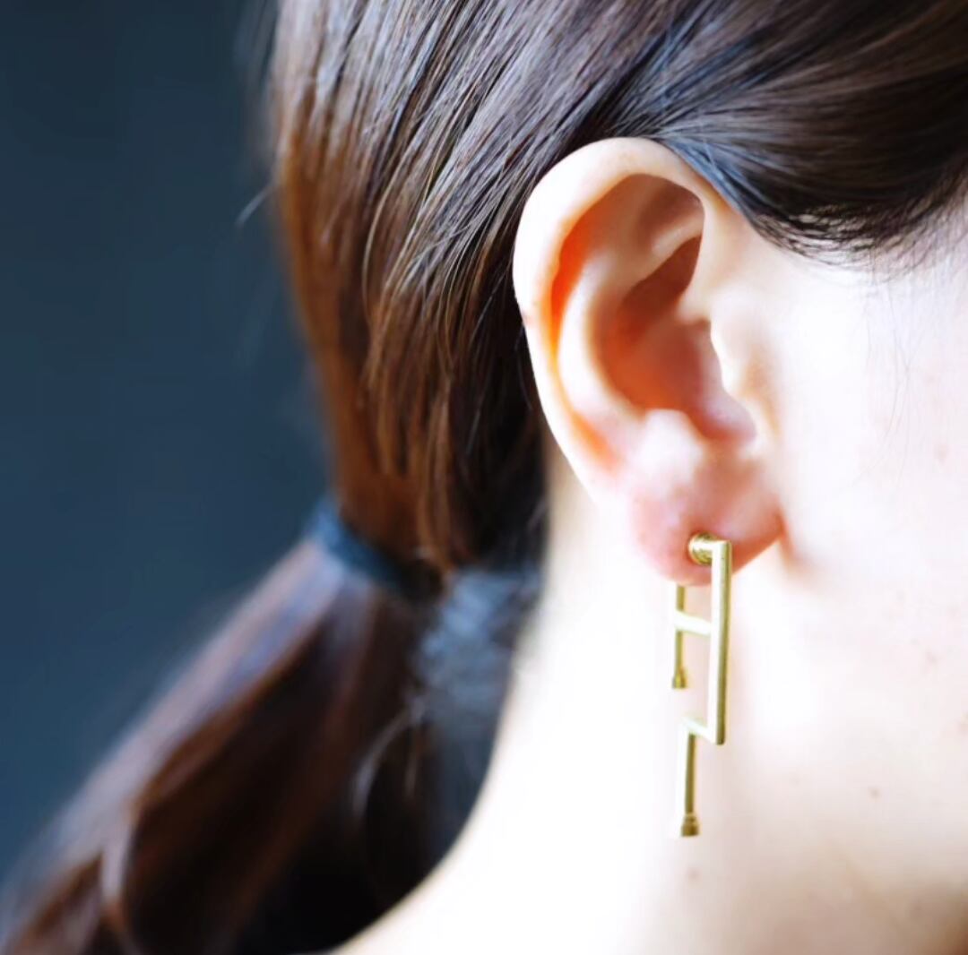本体部分+イヤリング金具は真鍮を使用しております。ピアス金具のみシルバー925を使用しております。