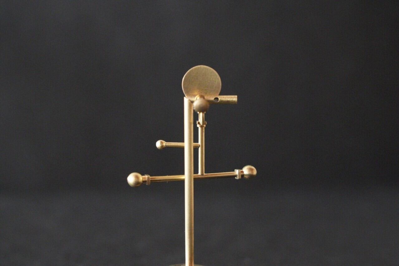 金属線を1本1本切り出しバーナーでロウ付けして作製しております。球体のバランスがリズムをもたらし、前からも横からも楽しめる立体的なデザインです。