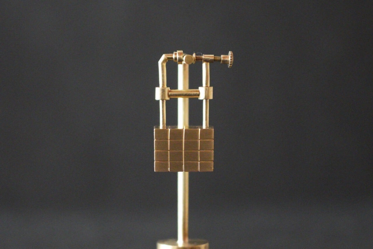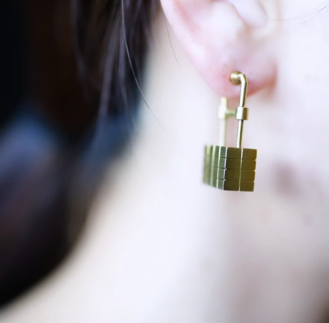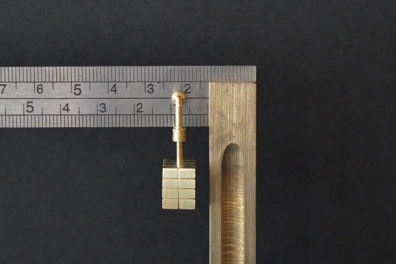 金属に1本1本溝を入れ、糸鋸で線を引いて作り出された規則正しい線が端正な印象を与えてくれます。